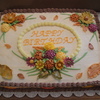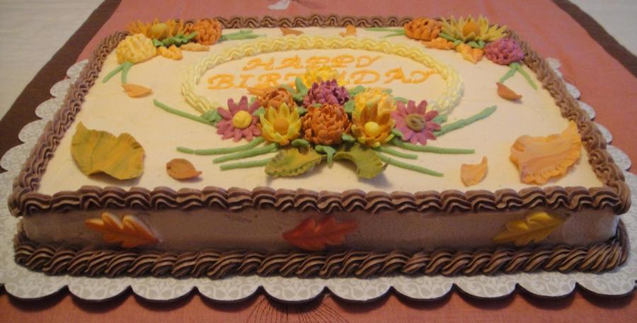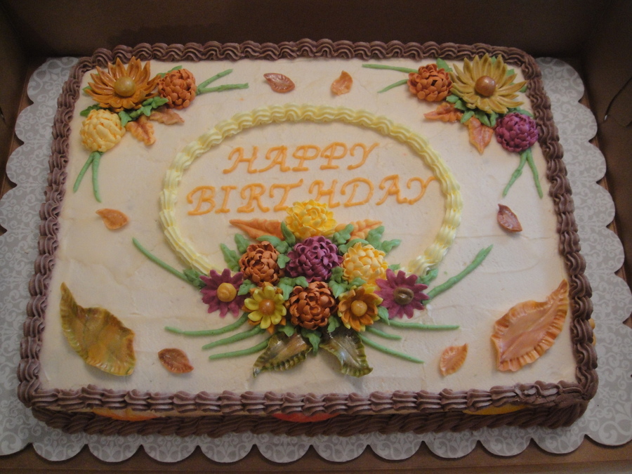 The flowers & leaves are made from royal icing and fondant then I brushed bronze dust over most of them. The cake was made for my neighbors' mother's birthday.