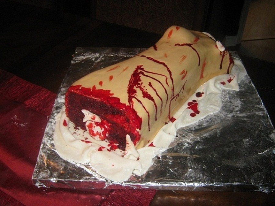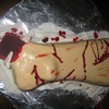 So we became a level 2 trauma center so my nurse manager wanted a trauma cake so here it is. Should post this in the cake disaster part also since my dog gave the trauma cake a traumatic injury by eating the heel!