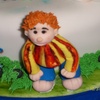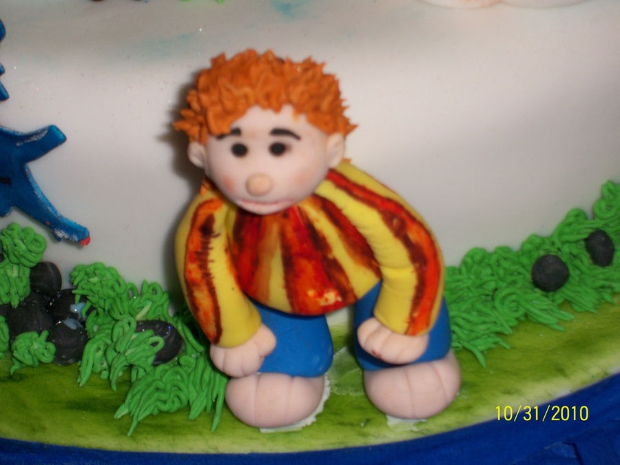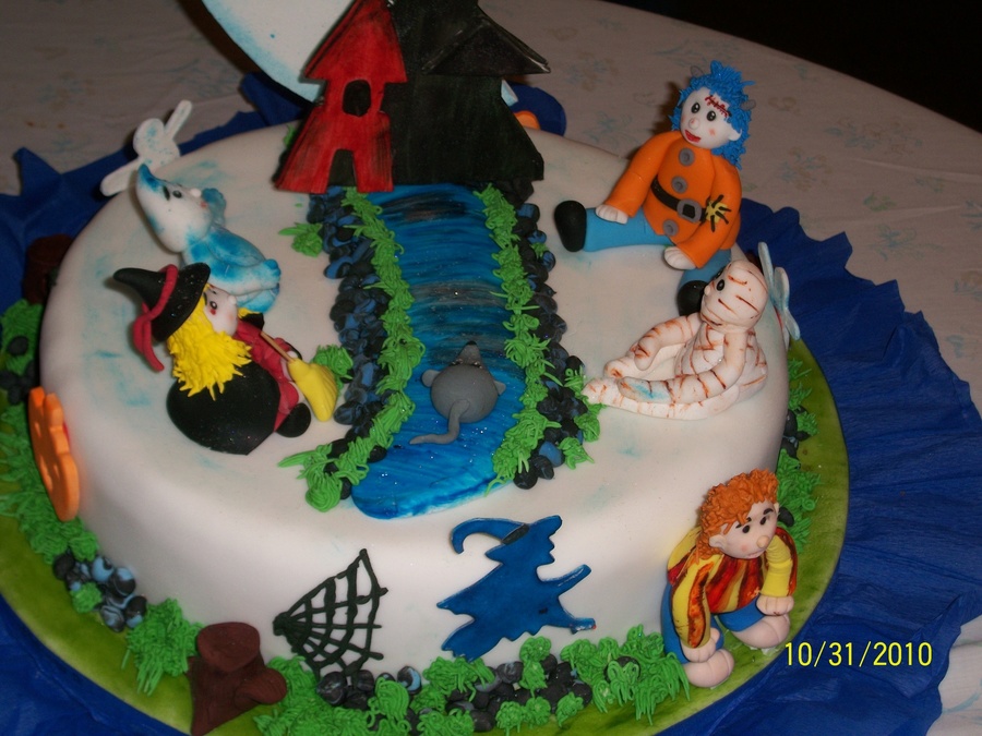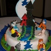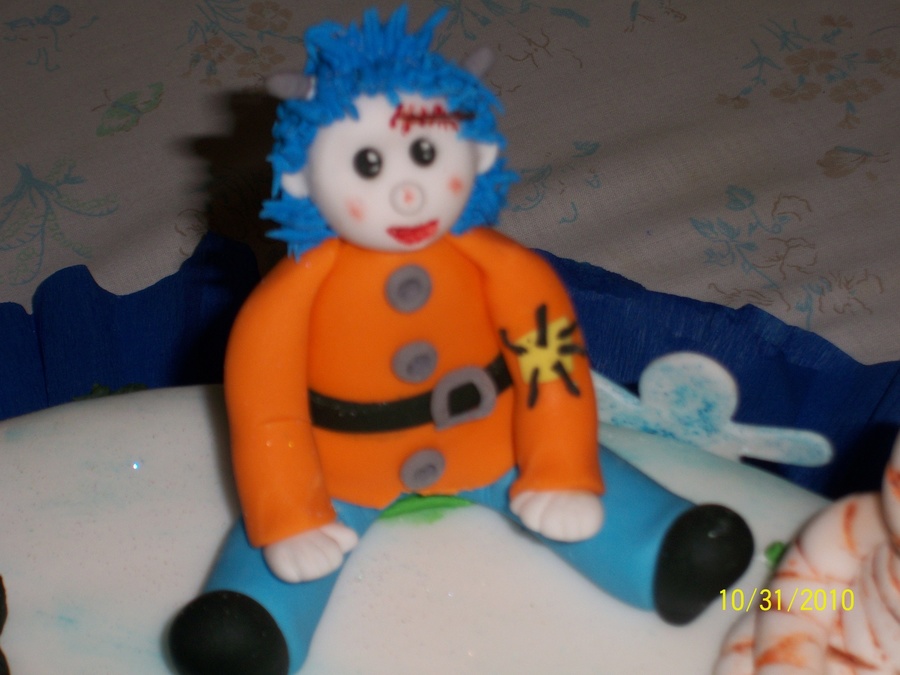 Cinnamon and fig cake, covered with almond-flavored fondant. All characters are made from gum pastel and the moon and the castle are "pastillaje".