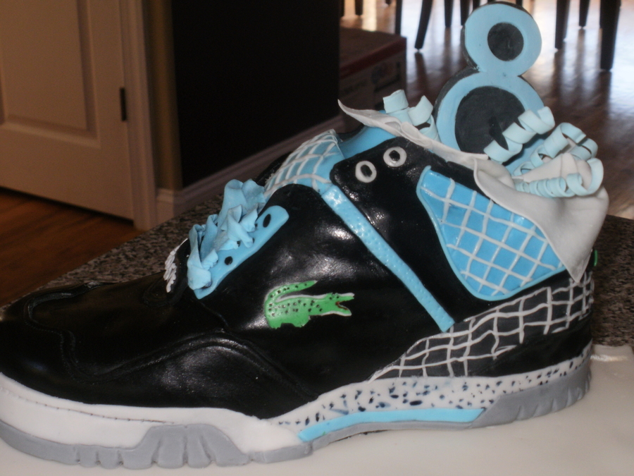 This was my first shoe cake. It was for an little boy who was celebrating his eighth birthday. I learned a lot making this cake. It was difficult but a lot of fun! Thanks for looking!
