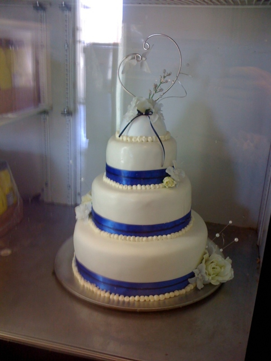 Only my second wedding cake ever made... simple ribbon and icing dots