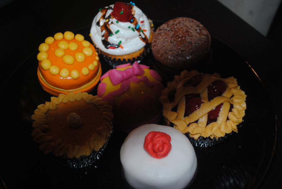 These are dessert cupcakes I did for a party. We have cherry pie, pumpkin pie, a variety of little cakes and a icecream sundae. Sorry the picture didn't come out that great