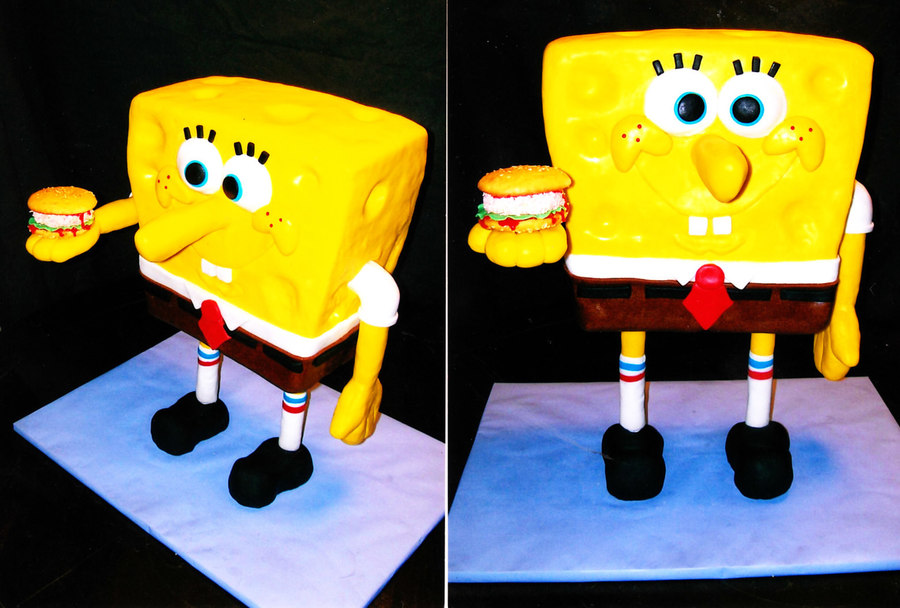This Sponge Bob cake was 3D and stood about 3 ft. tall. His arms were jointed and could move up and down. In his hand was a mini cake made to look like a krabby patty.