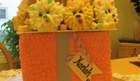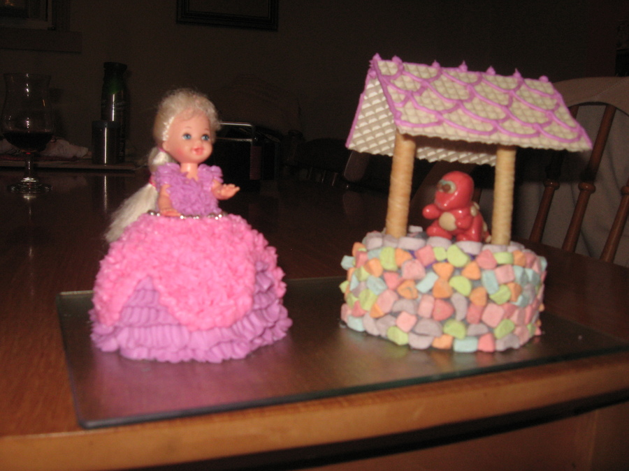 Cake and BC dress with cake and BC well. Pretzel supports and wafer roofing.