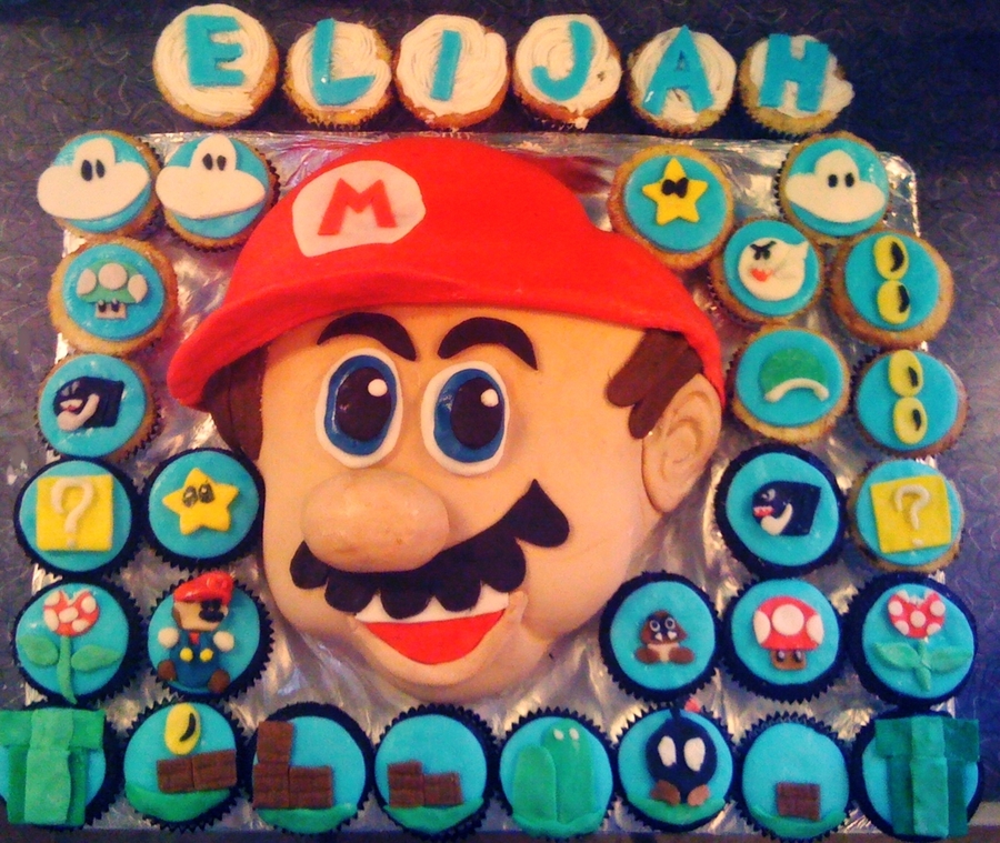 Made this for my son's 9th birthday. Cake is sculpted and covered with MMF. Cupcakes are decorated with fondant and modeling chocolate accents done mostly by my kids ages 8-12. I think they did a fabulous job!