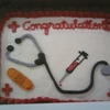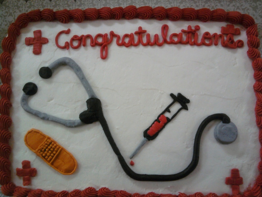 decorated with bc, this cake was made for a graduating medical assistant. It features a stethescope, band-aid and syringe...