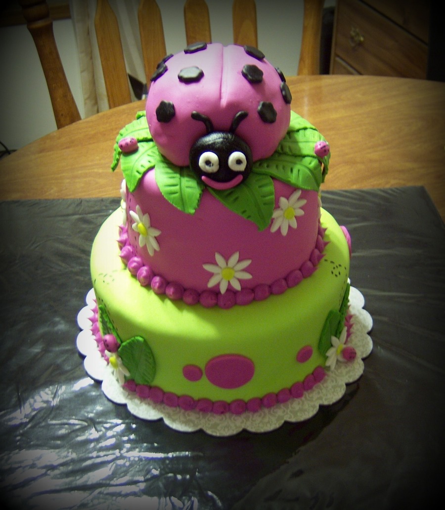 Bottom tier pumpkin spice with cream cheese filling, top tier chocolate with BC. All covered in MMF. Ladybug is RKT covered in MMF. Thanks to all the inspiration here on CC!
