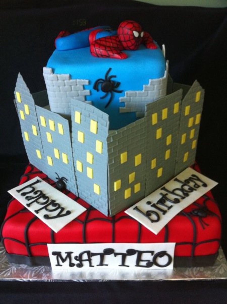 This little boy was dressed as Spiderman for his party, so the cake was perfect for him!