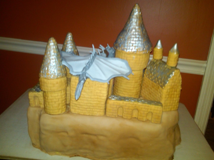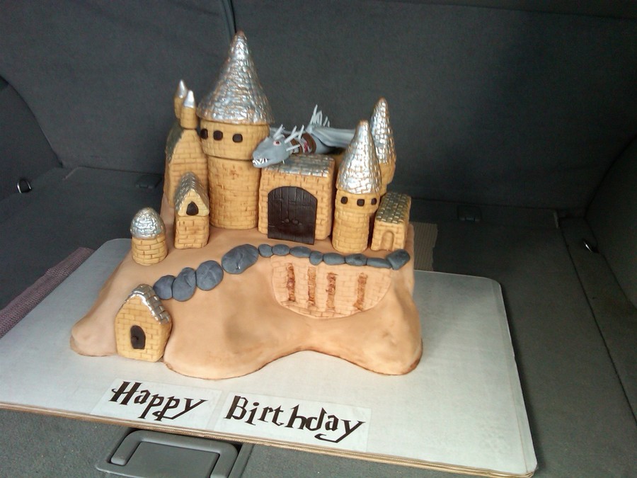 My husband is currently serving in Iraq and this cake was made for his Army buddy"s wife. He wanted to surprise her even though he is far away. She was having a Harry Potter themed birthday. She knew she was getting a cake but thought it was just a sheet cake. Castle made out of rkt covered in fondant.