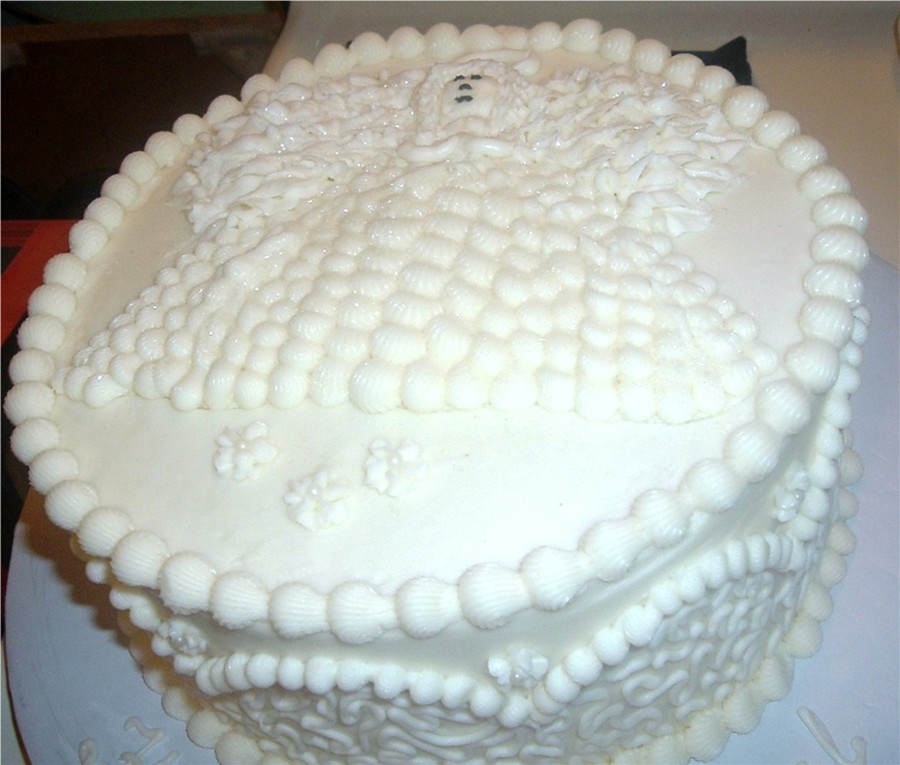 Vanilla Cake, strawberry filling, cream cheese frosting...for a friend whose name is Angel