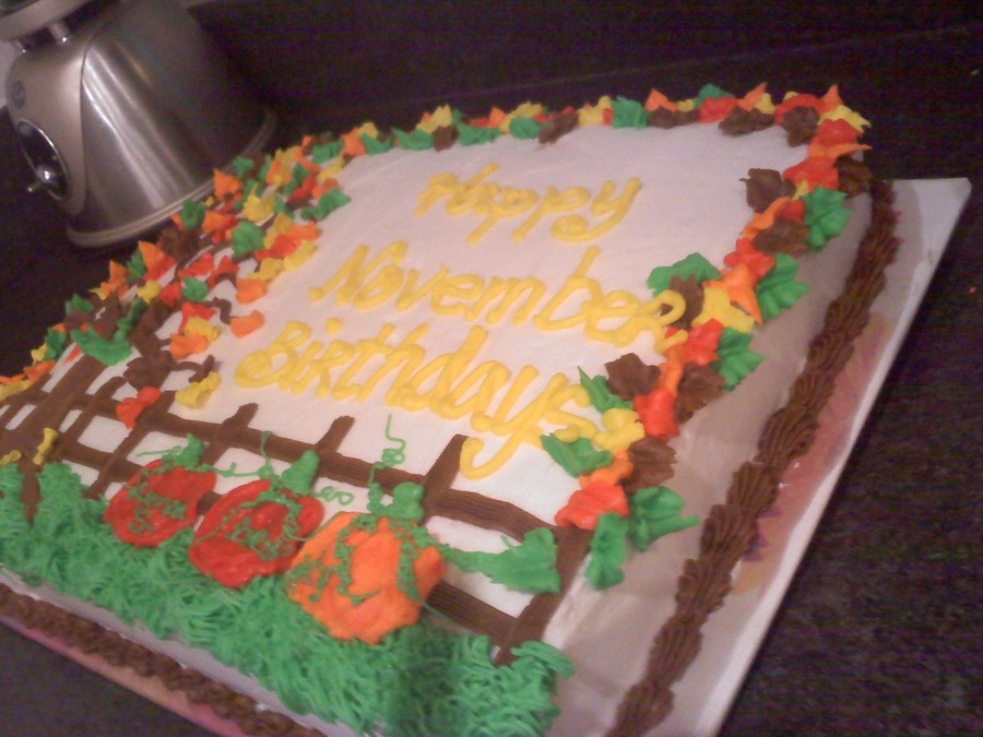 This is a confetti cake frosted and decorated in buttercream frosting. I made this for work for the November Birthday's. TFL
