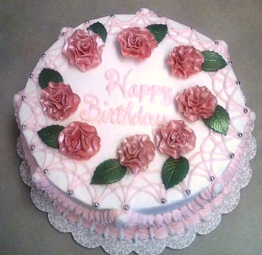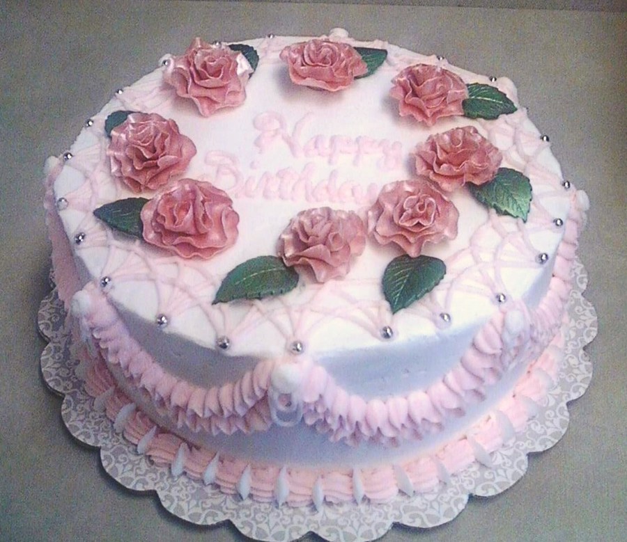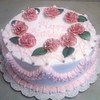 This is buttercream with fondant carnations dusted with pearl lusterdust and silver dragees. French vanilla with strawberries and cream filling. The photos do not do this cake justice. In person, it was a very lovely cake.