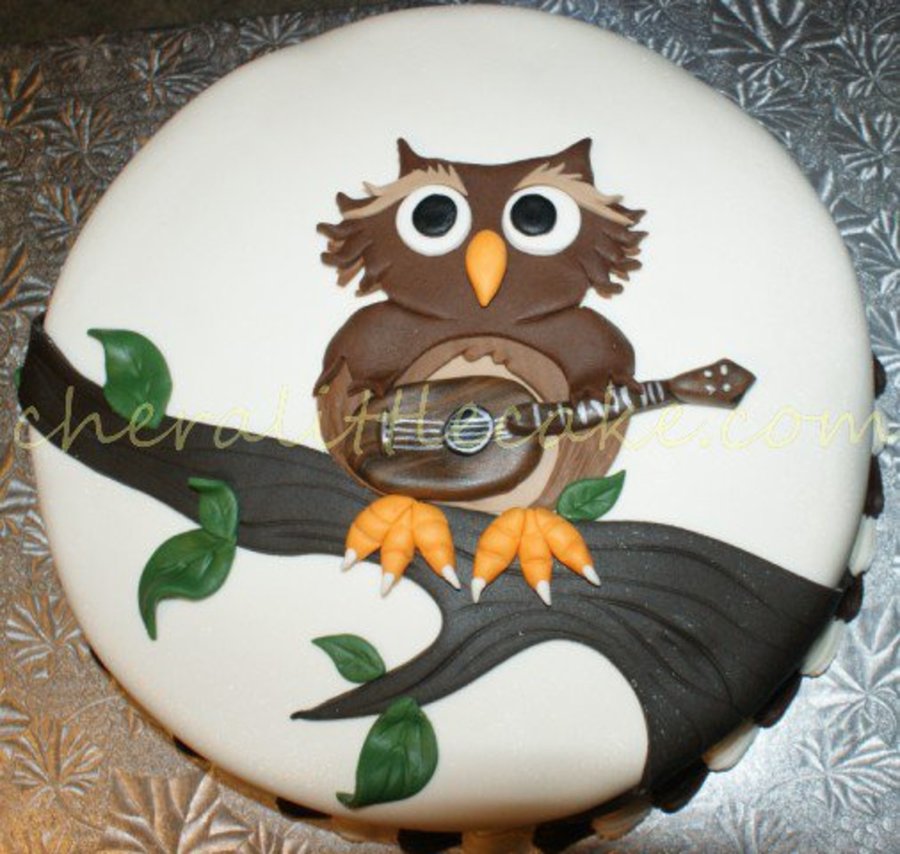 I was asked if I could make a cake for an anniversary that represented the couple. The wife was well known for her owl collections and the husband for playing his ukulele.