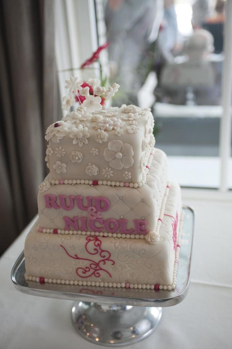 Weddingcake in off white with pink details