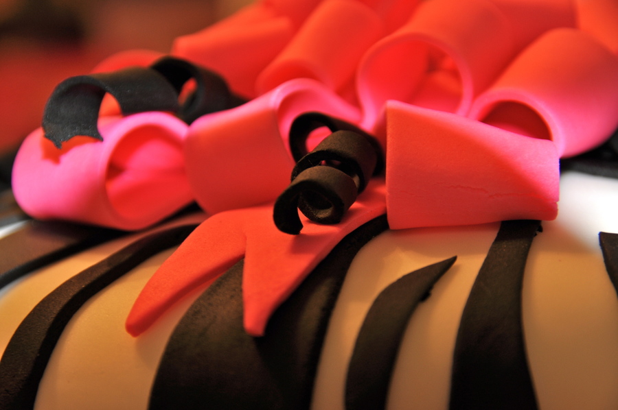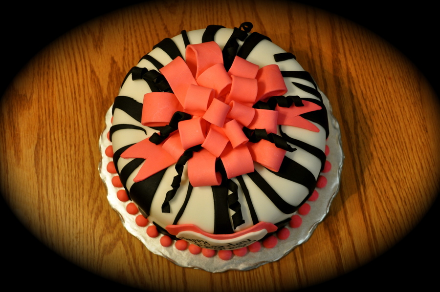 8 inch round, all fondant. My first real attempt at a bow...need some practice, lol