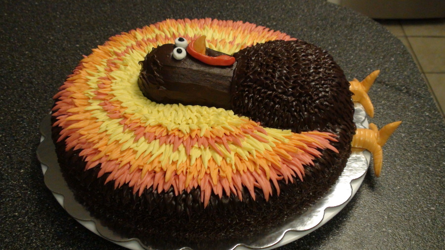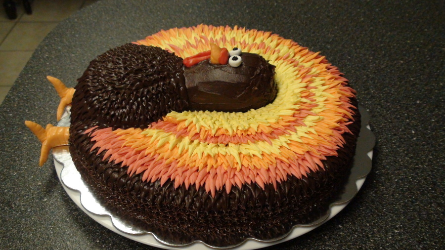 My Thanksgiving turkey , i made this one for the covered dish at our church everyone enjoyed it :) Thanks for the inspiration CakeCentral :)