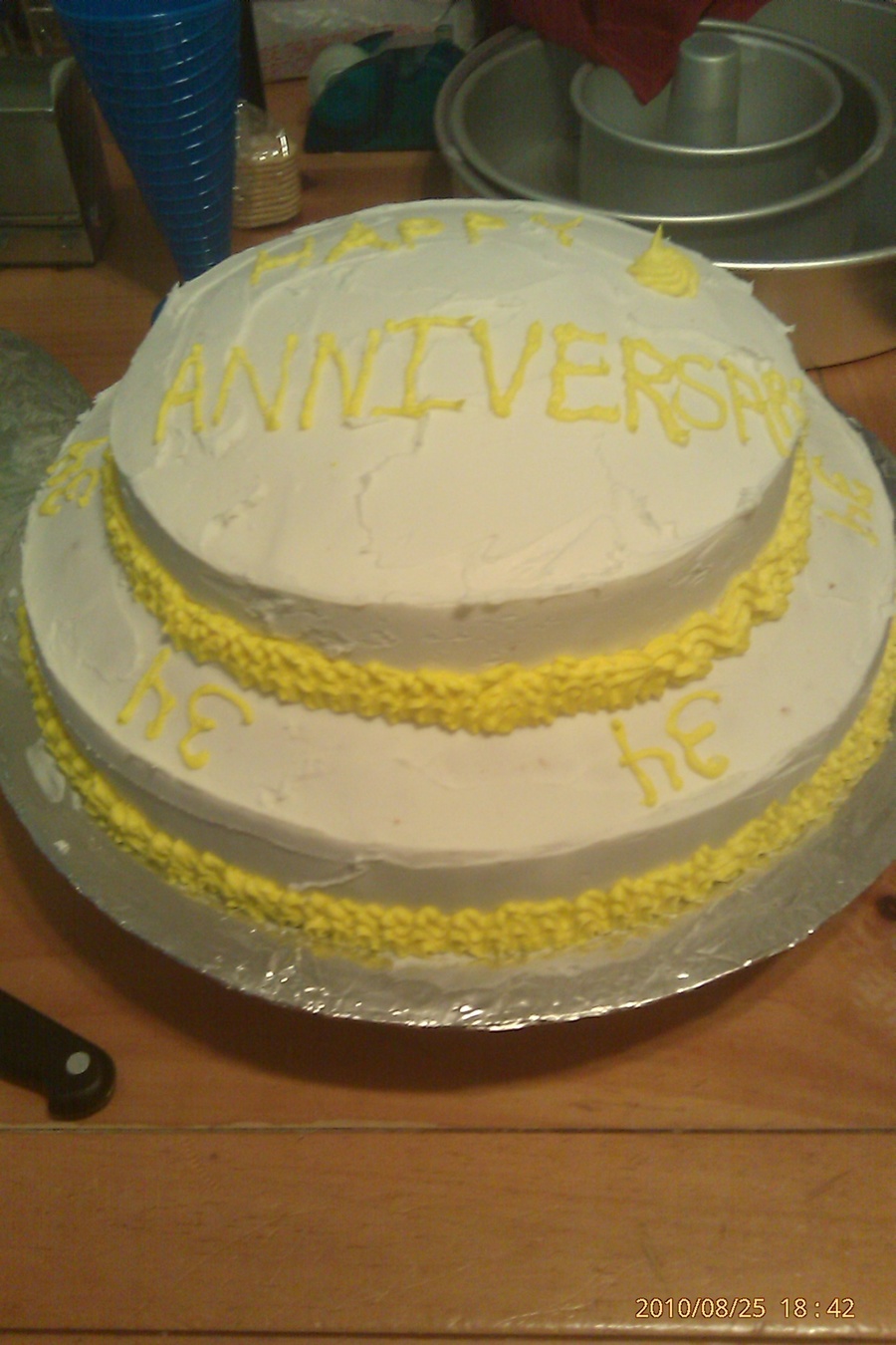 My first tier cake made with yellow cake and butter cream icing. It turned out ok
