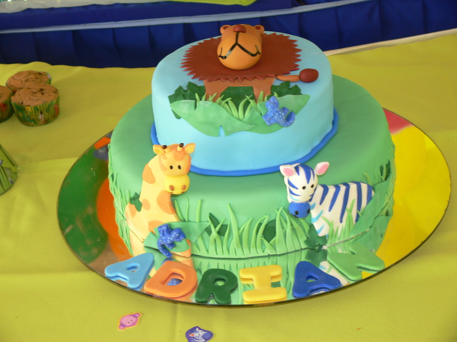 This cake is covered with fondant, animals and everything!