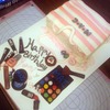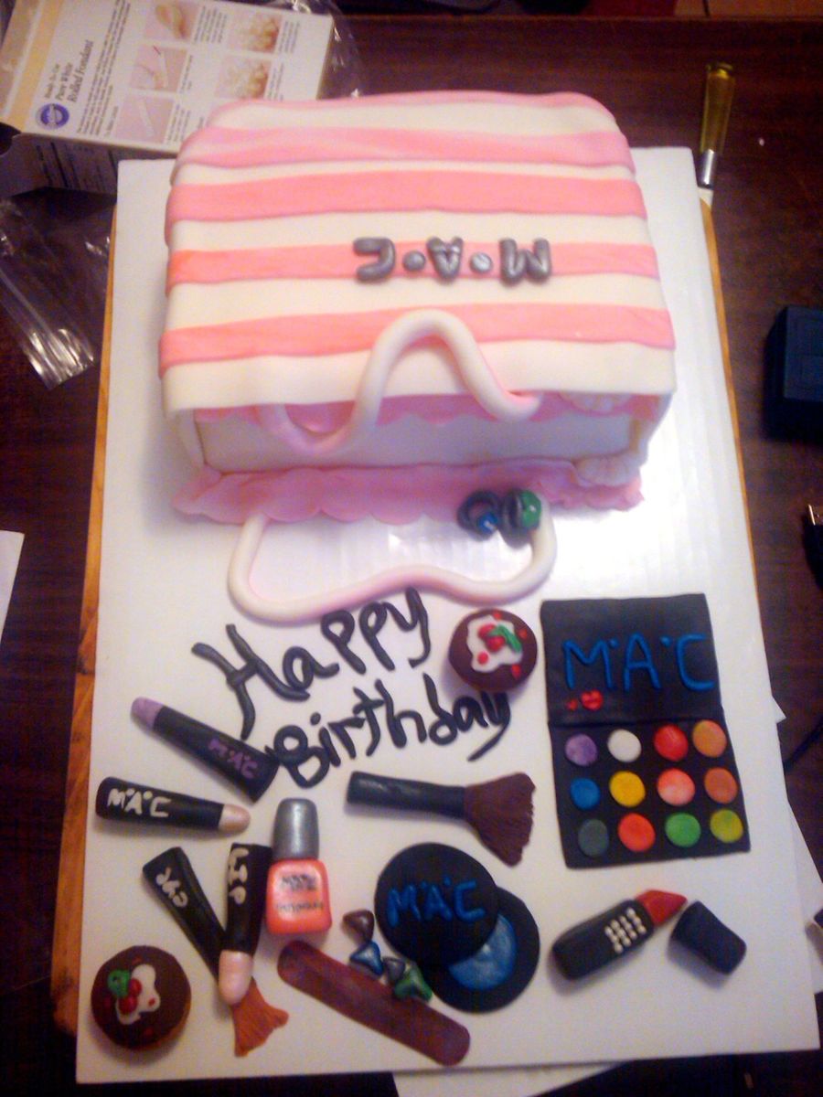 This one here is a coconut cake with coconut cream filling and decorated into a makeup bag with makeup accesories