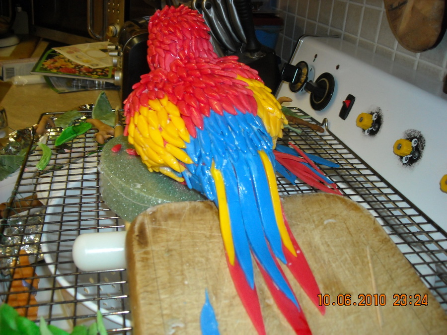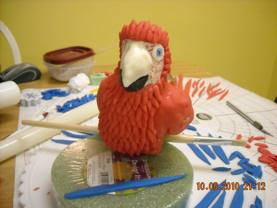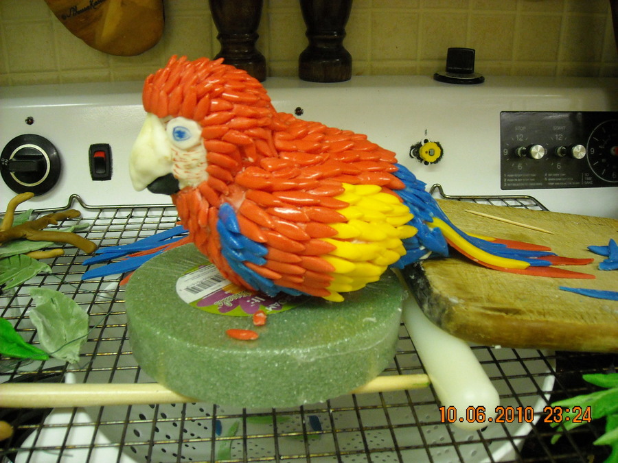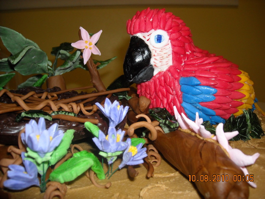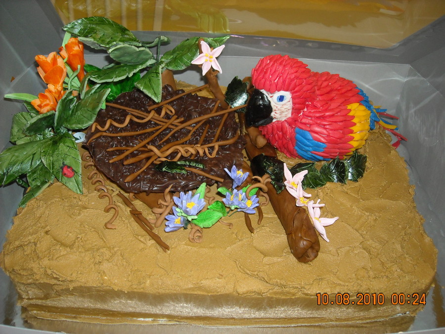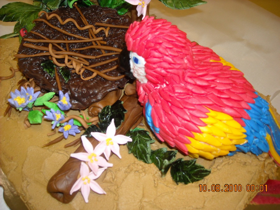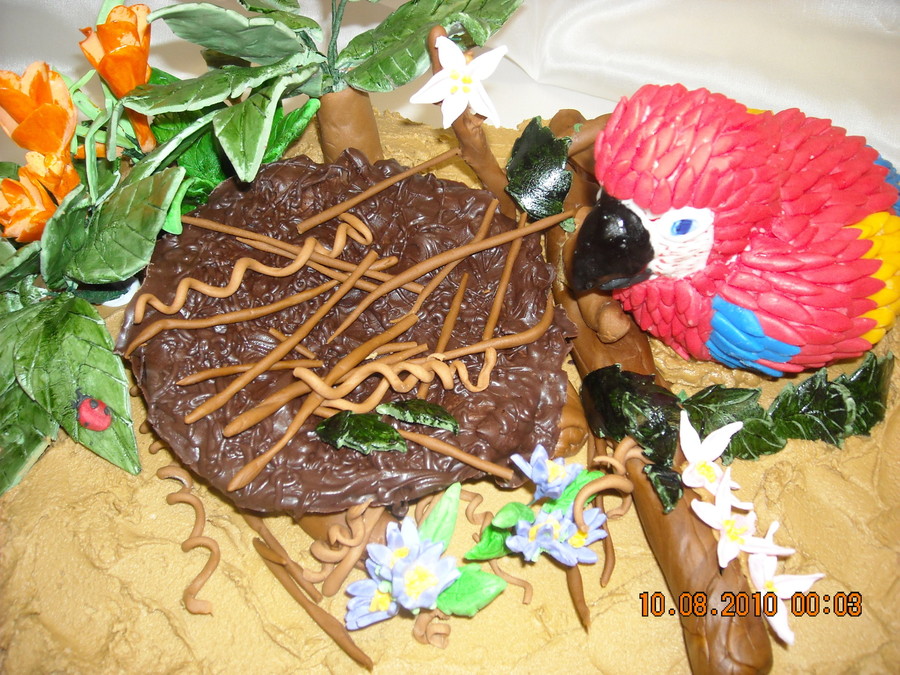 Parrot made from RKT & fondant, fondant accents with a choc nest.