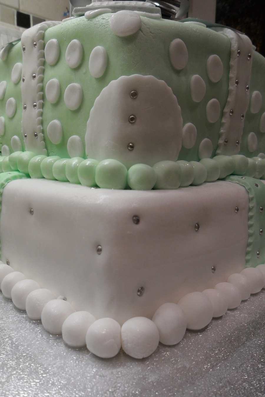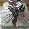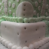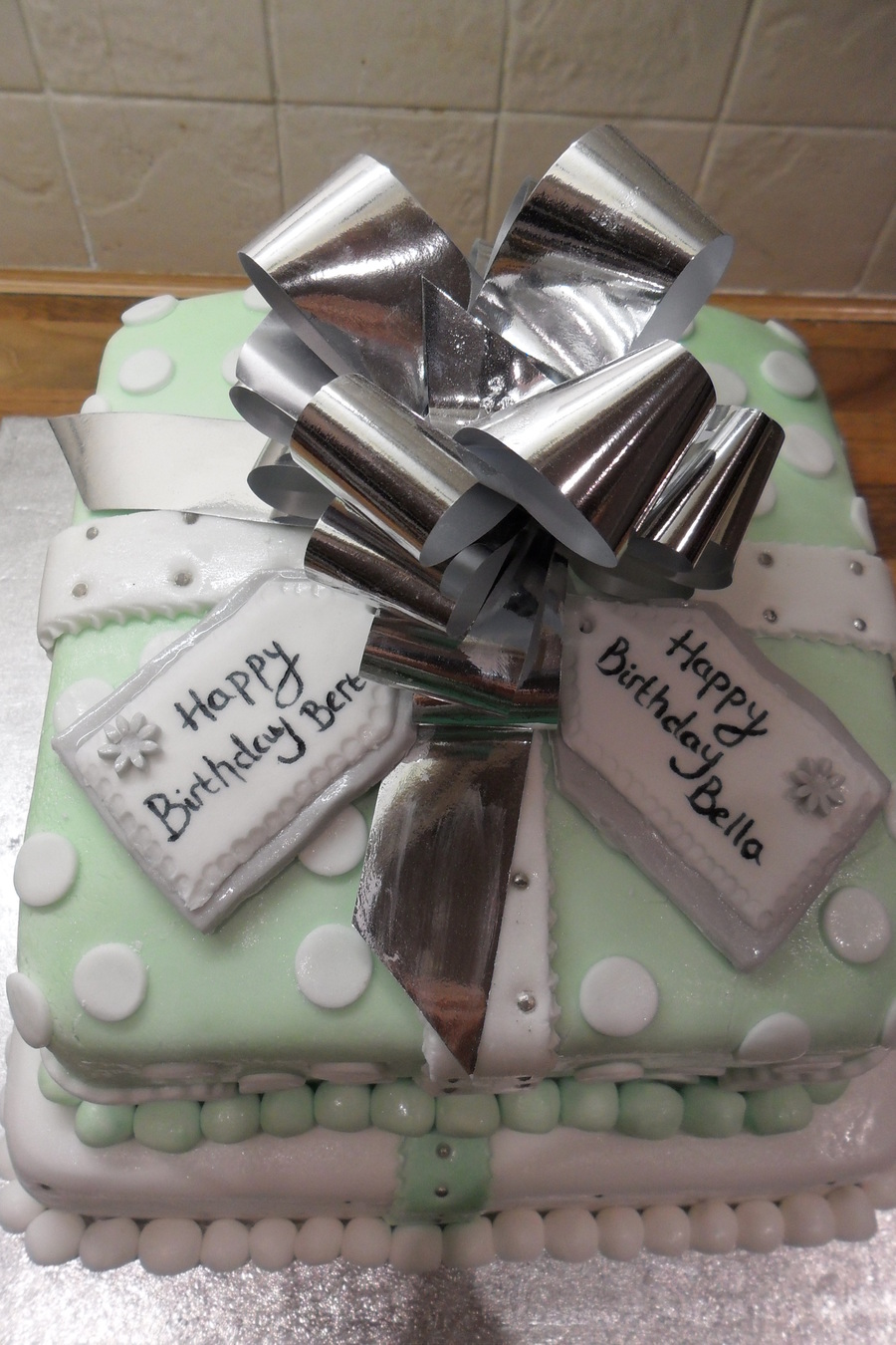 The top tier of this cake was moist chocolate sponge, lovingly filled with chocoltae fudge. The bottom tier is vanilla sponge, filled with strawberry jam and vanilla buttercream. It was made for a joint birthday 80th & 82nd - so i wanted to keep the colour scheme simple and elegant.