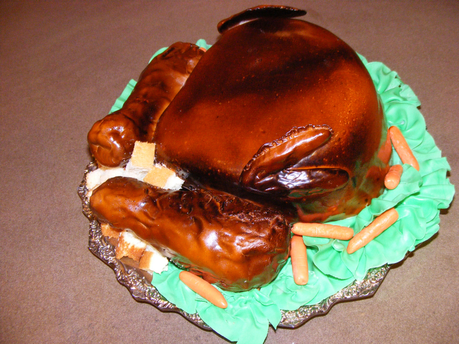 Cake with drumsticks made with RCT covered with fondant and airbrushed.