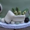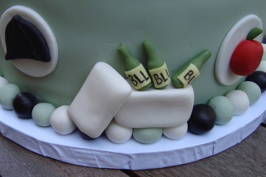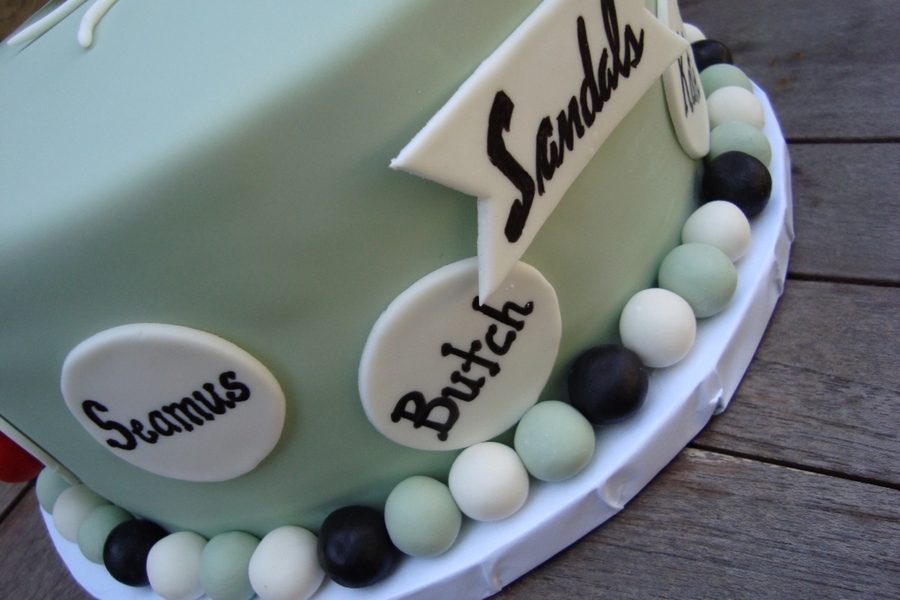 I call this an "Everything" cake because the client wants EVERYTHING represented. I tried to bring it together with color (b&w) and shapes (circles).