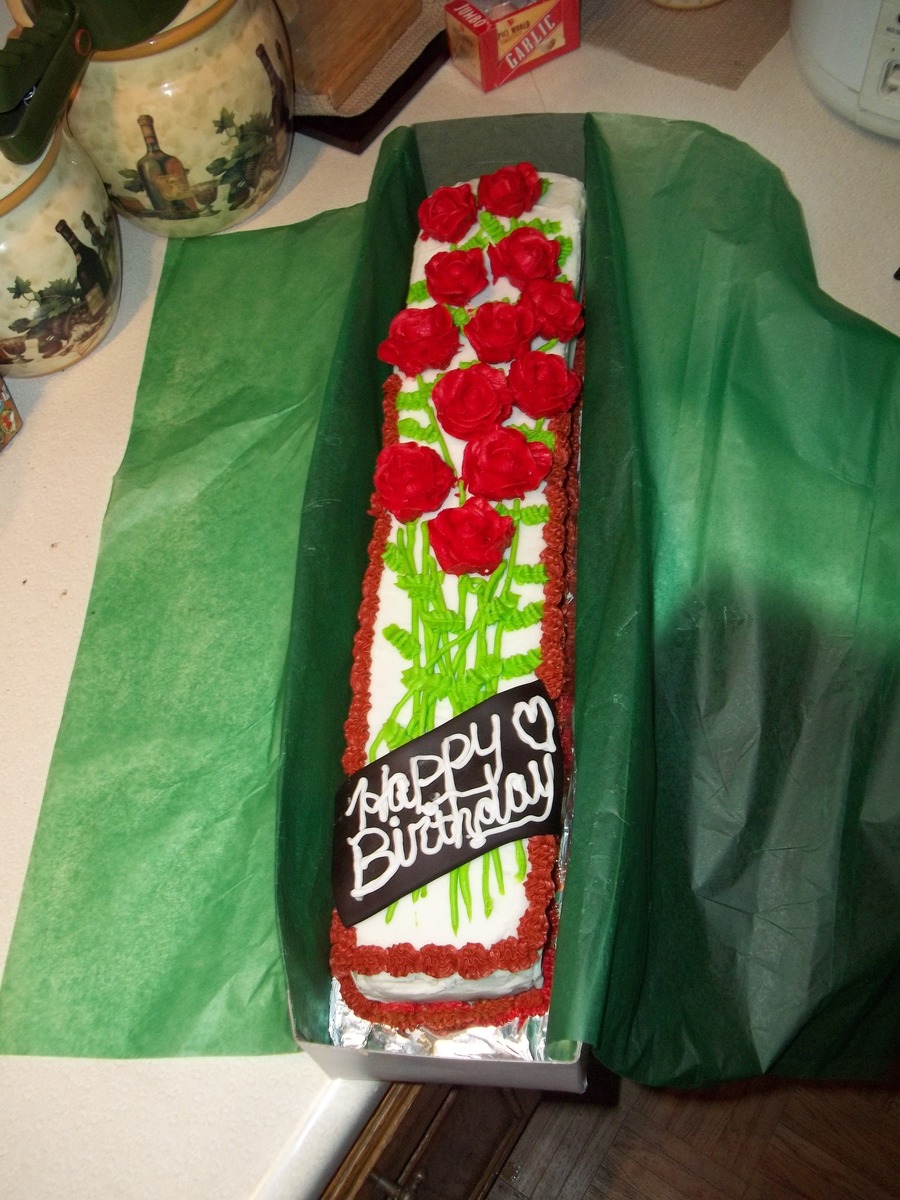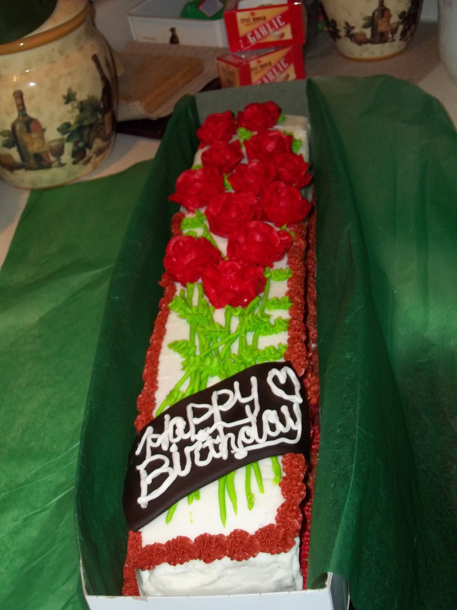 Creme Brulee cake w/ whipped chocolate ganash filling. Covered in BC and roses are BC as well