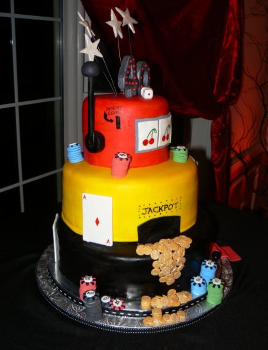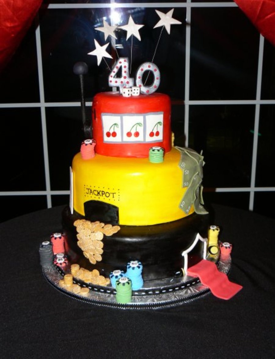 Cake I did last year for a client that was turning 40. His party was Las Vegas themed. Red Velvet bottom tier, middle tier was white w/lemon, and the top was chocolate with raspberry.