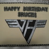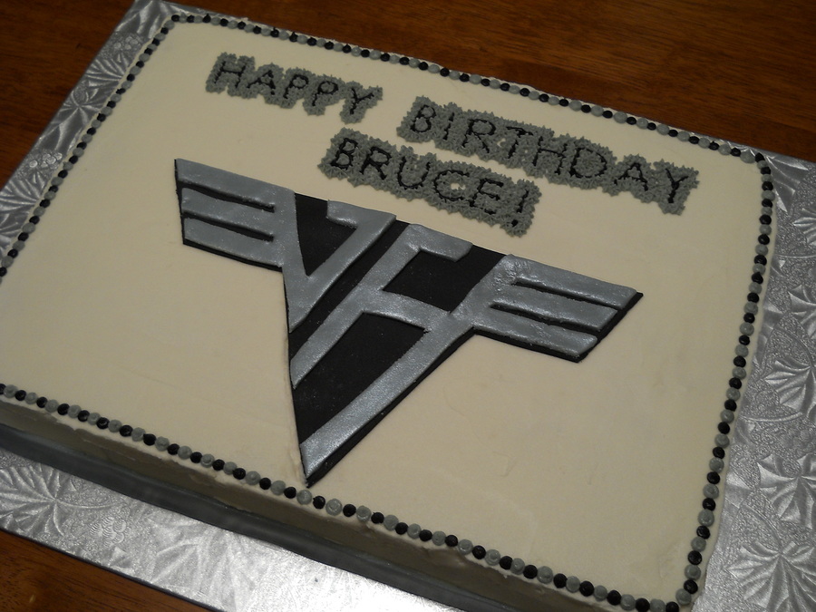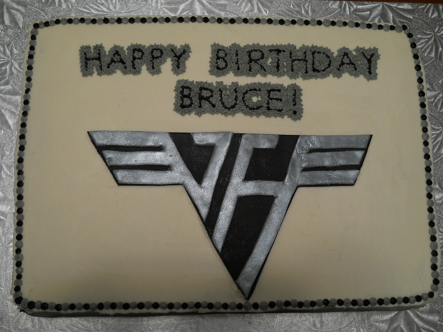 A friend wanted a Van Halen cake for her husband's birthday, so this is what I came up with. Fondant image dusted with pearl dust to give a metallic look. Thanks for looking! :)