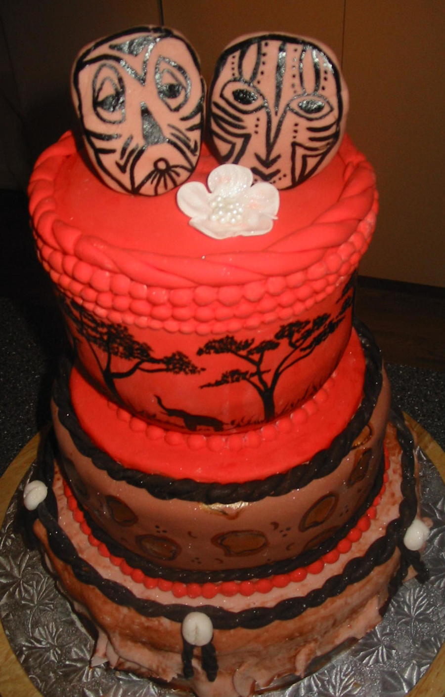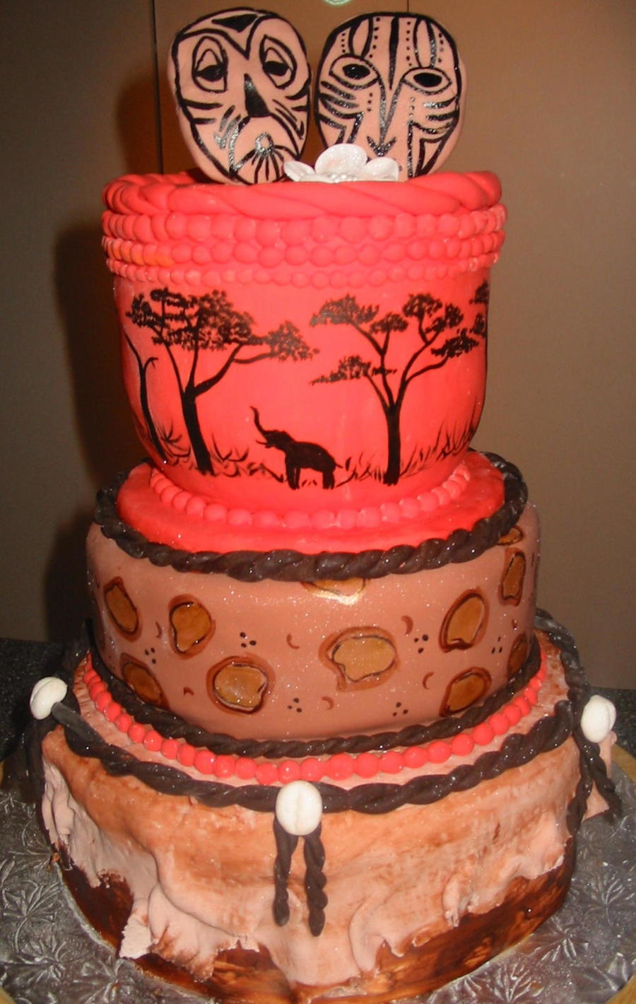 all hand painted....top is an African hand painted vase with two hand painted masks and a flower, middle is cheetahish print, bottom is African drum with some shells.