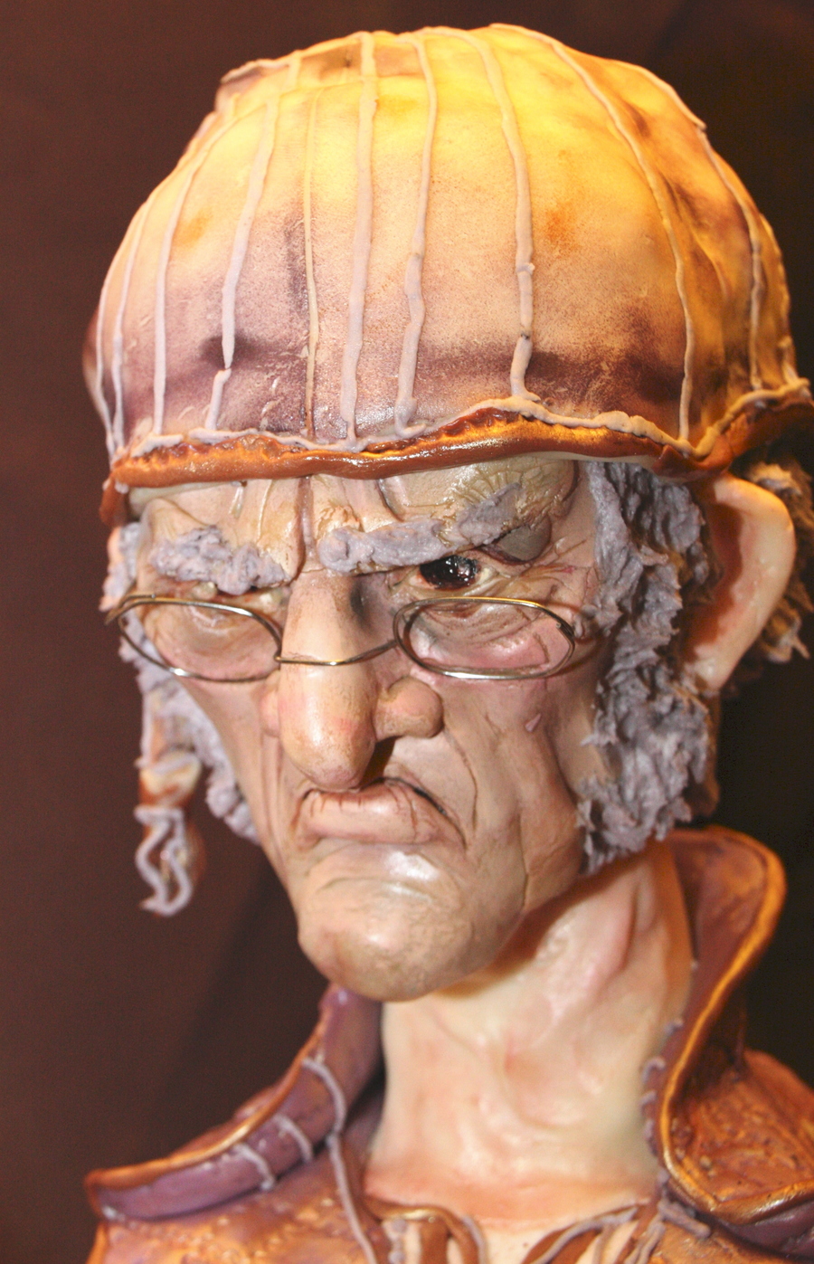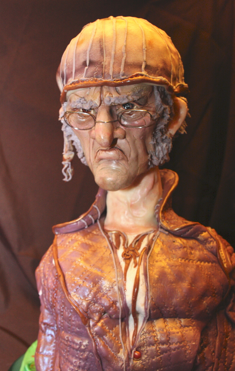 rice crispie , modeling chocolate, mint chocolate, and strawberry creme brule' cake. covered in buttercream rolled fondant