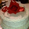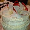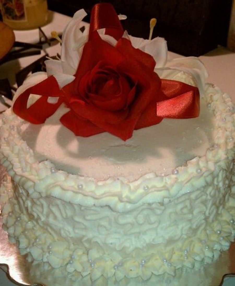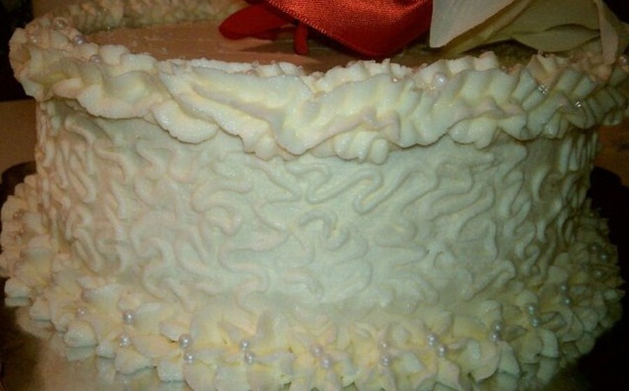 White cake with pure white butter cream. This was an exact replica of a friends top wedding teir.