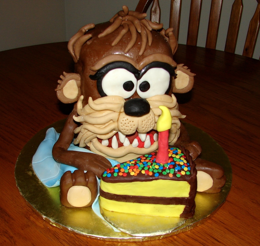 I made this for my sons Bday. At times he can fly around like a mad man so this fit him. This is fudge marble cake with buttercream and MMF, Chocolate MMF. The slice of cake is a rice krispie treat covered in modeling chocolate. Got the idea from Debbie Brown's book, of course mine is not nearly as good but I am very happy with how it turned out and my son loves it.