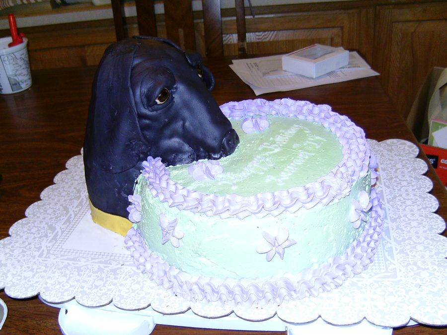 This was a first time carving a cake, it is supposed to be a great dane, lol! (More like a sheep) Chocolate cake and marshmellow fondant. My daughter came home from work and thought her dog was actually in her cake! She talked about this cake for weeks!