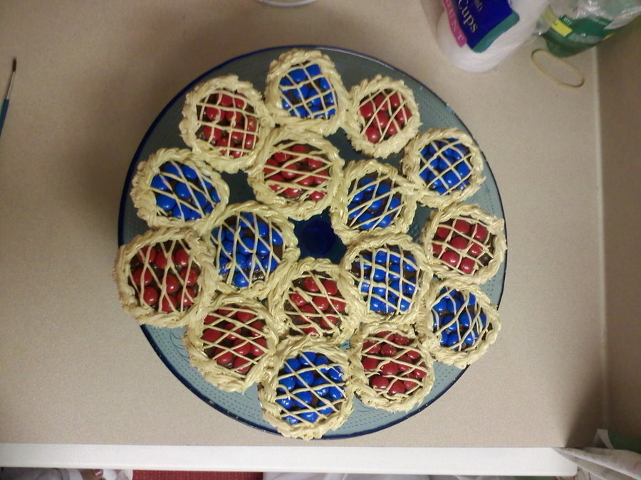 Pie cupcakes.. these were chocolate and vanilla marble with red and blue m&m's on top.