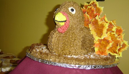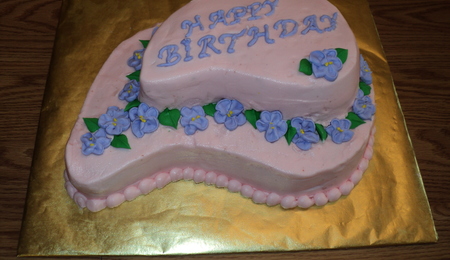 Carmel cake w/ Apple filling. Covered w/mmf. Bow and flowers mmf.
