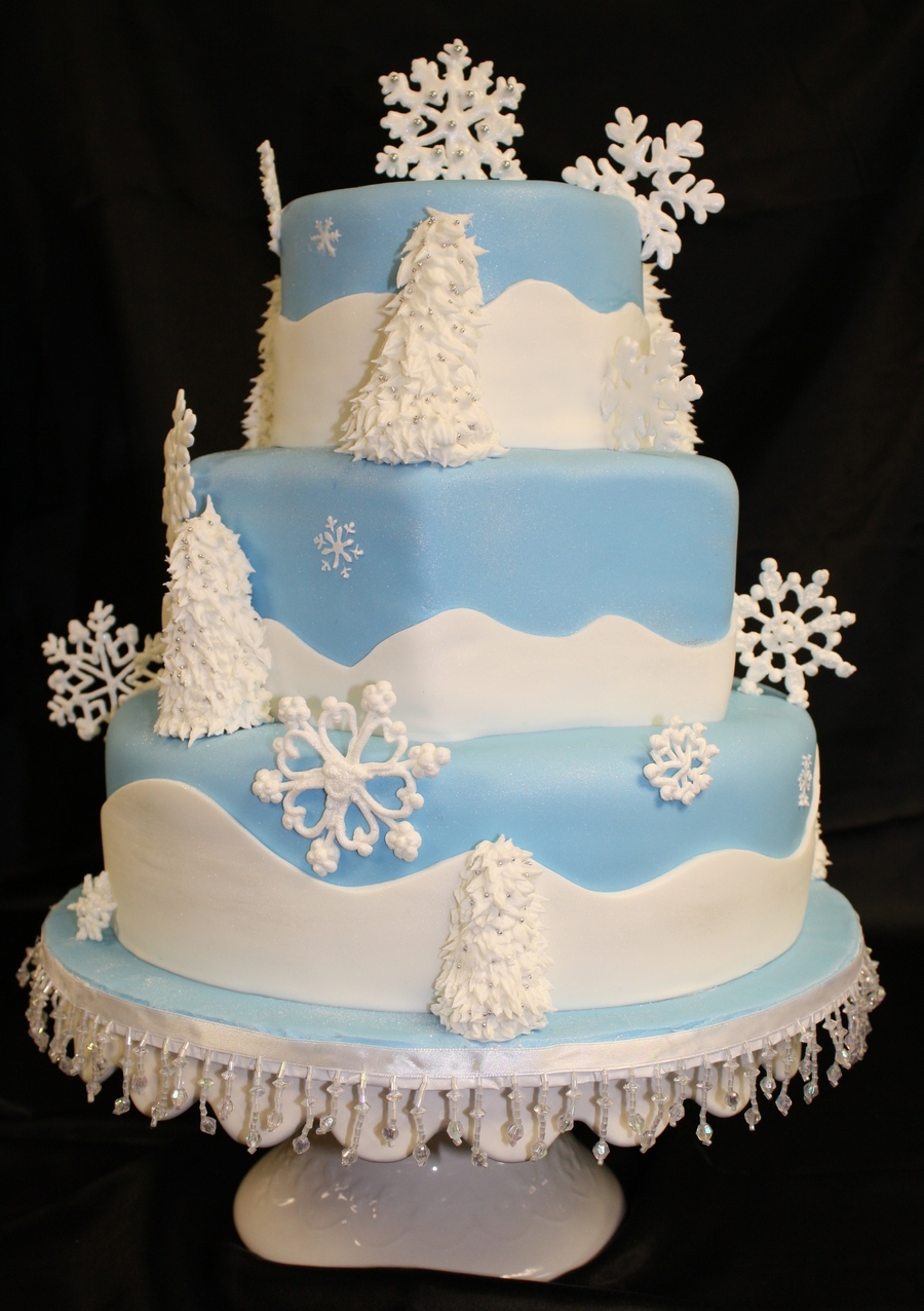 This was done for a family event called the Kris Kringle ball. All fondant with royal icing trees and snowflakes