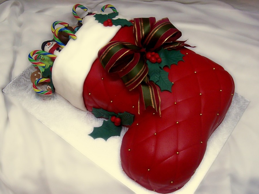 Love it. Did you freehand the stocking shape or use a pan? How big is it? You would never know it was your first Christmas cake. Beautiful.