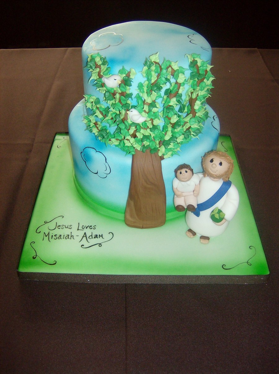 This was such a neat idea. The theme of the baptism was Go Green and they wanted the Tree of Life with Jesus holding the Baby and the Go Green ball.