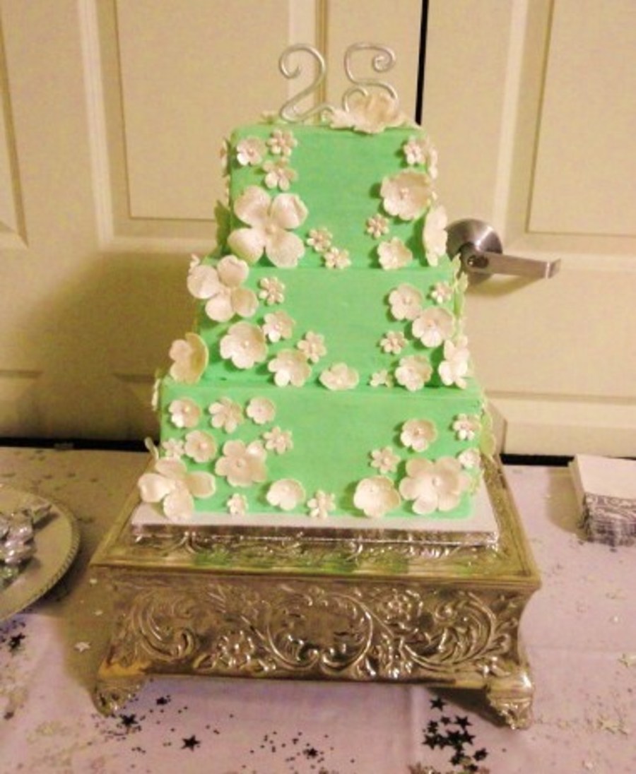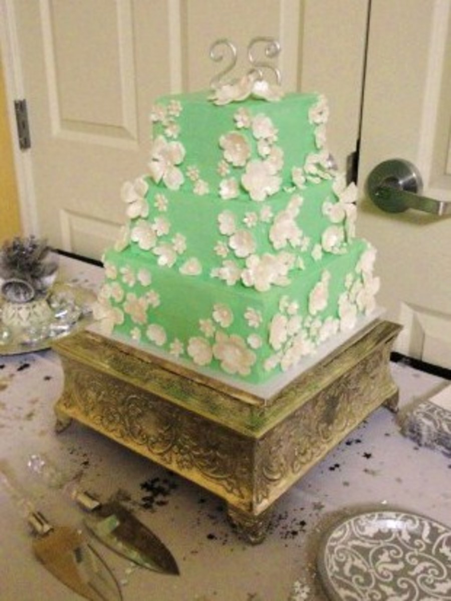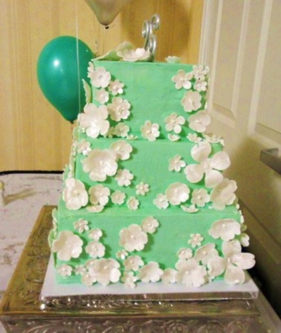 Green And White Anniversary Cakes With Gum Paste Flowers