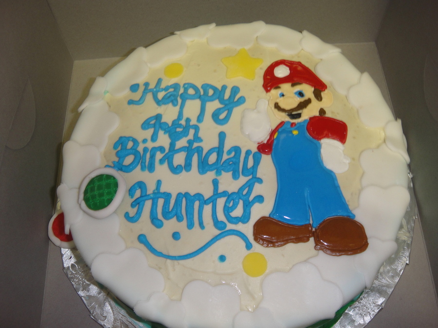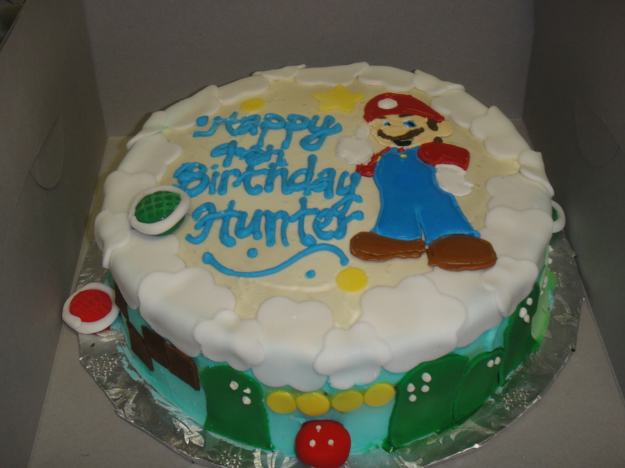 Mario was royal icing which dried over the course of a week. The accents are fondant.