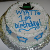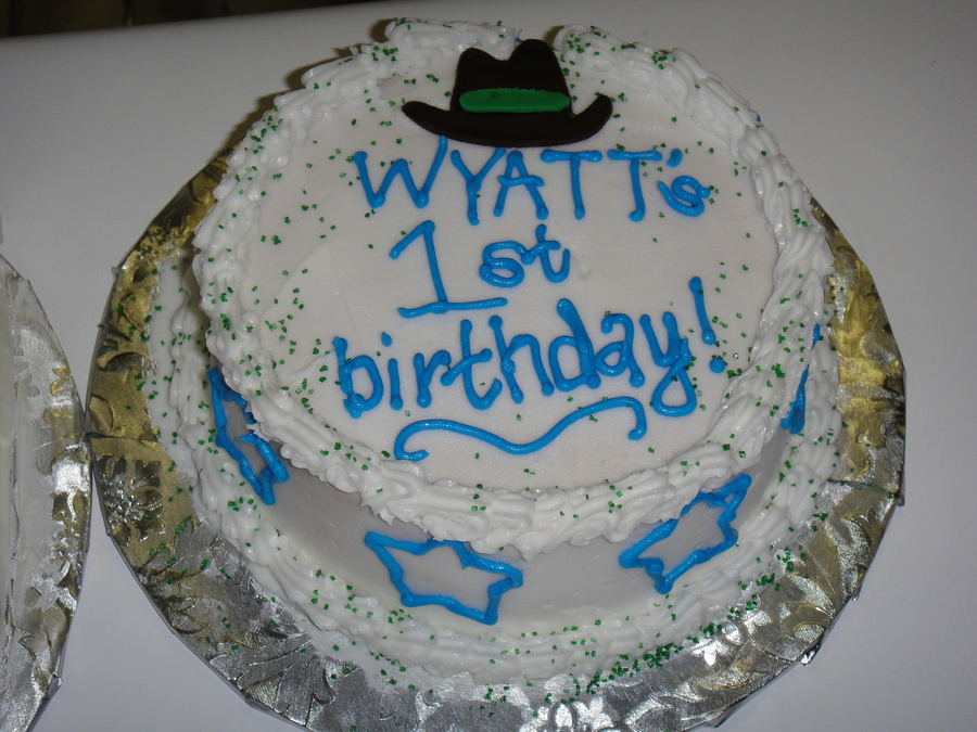 This was a one year old birthday cake. With the smash cake matching. The fondant accents were cut out with the Cricut.