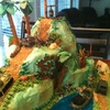 This is a multi-layer cake that a friend (hollylikescake) and I made. It is covered in buttercream and airbrushed. The water is made with jello.