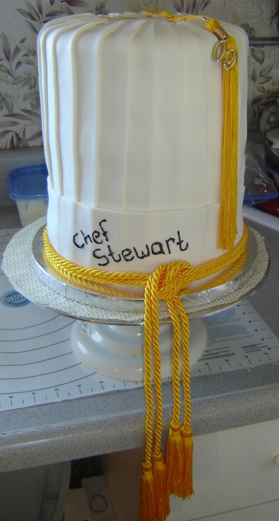 My Hubby graduated this Spring from Culinary school. I made him a Chef Jacket a couple years ago for his bday, a plate of food last bday and this for his graduation. He graduated with honors so that is why you see the real tassle and rope.