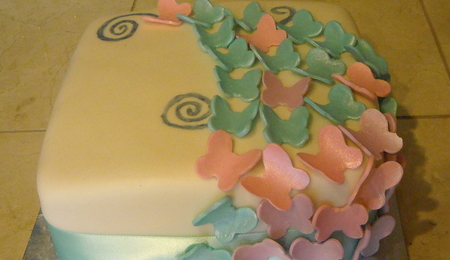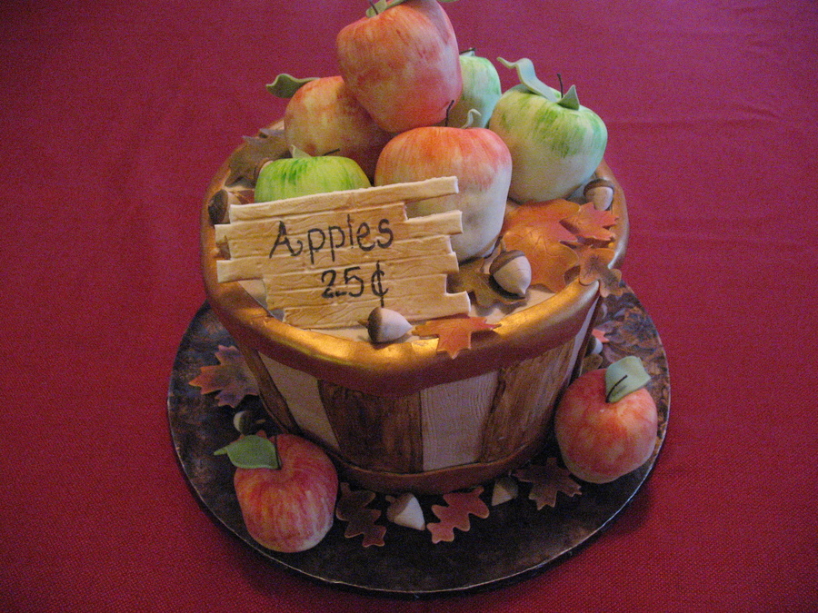 This is white cake w/hazlenut filling, and the apples are rkt covered in fondant. Thanks for looking!