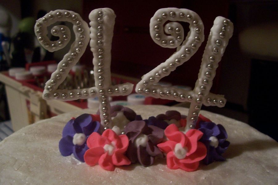Just an up-close picture of the cake topper I made for my moms cake. Royal icing with silver dragees. I was really happy with how they turned out, they were my second try because my 3y.o. ate my first ones, and at the birthday party my brother was messing around and broke one of them off.