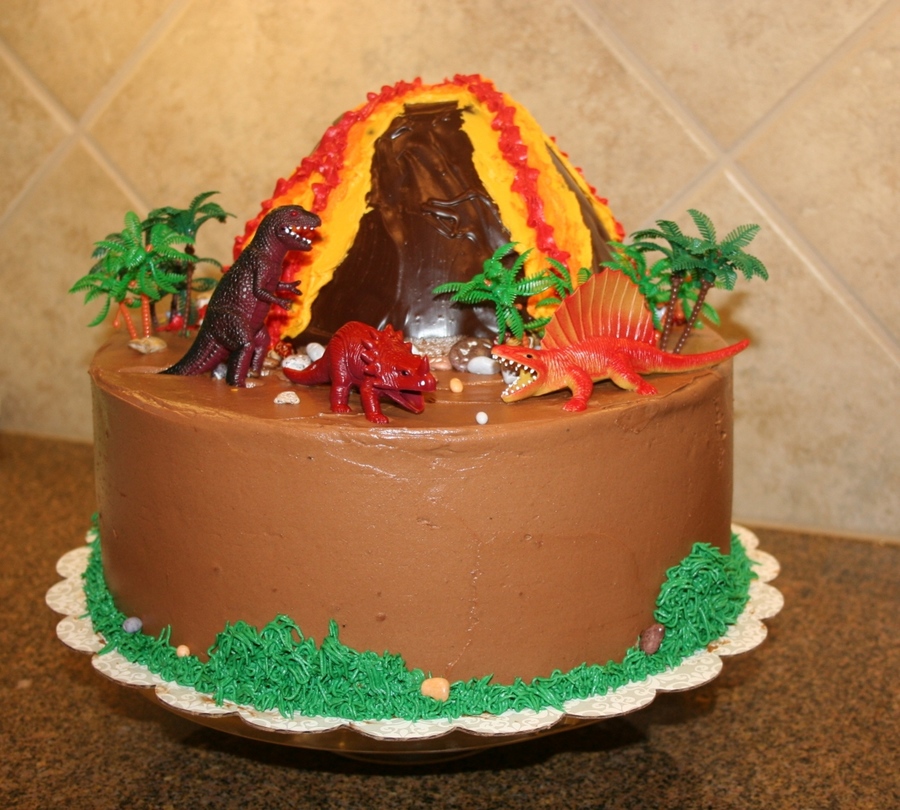 This was for my son's 4th birthday. Used the wonder mold for the volcano and poured ganache over it. He really wanted me to add bats around the top like they're flying around the volcano but we had to stop somewhere, right? ;-)