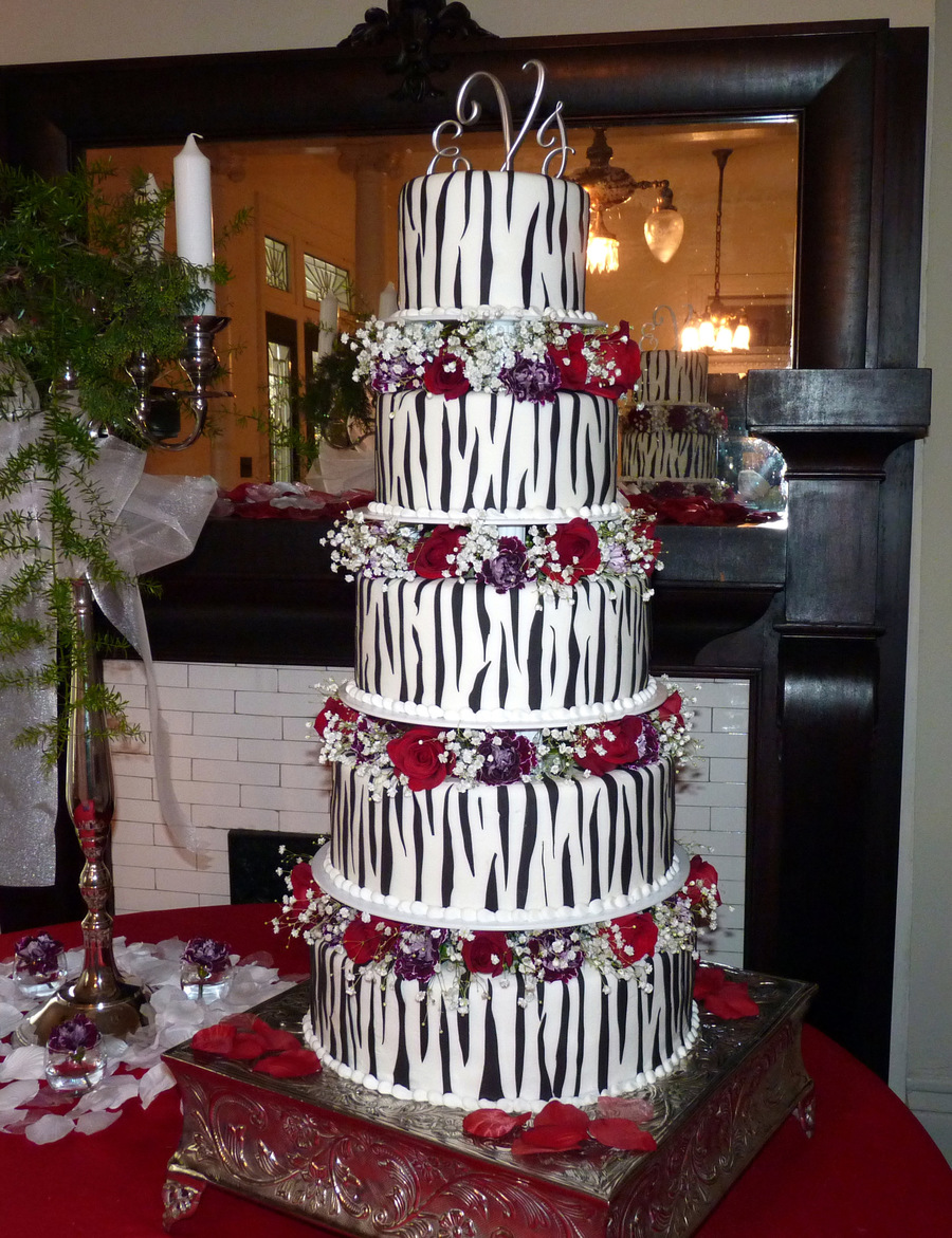 Butter cake with buttercream icing with fondant zebra stripes and fresh flowers