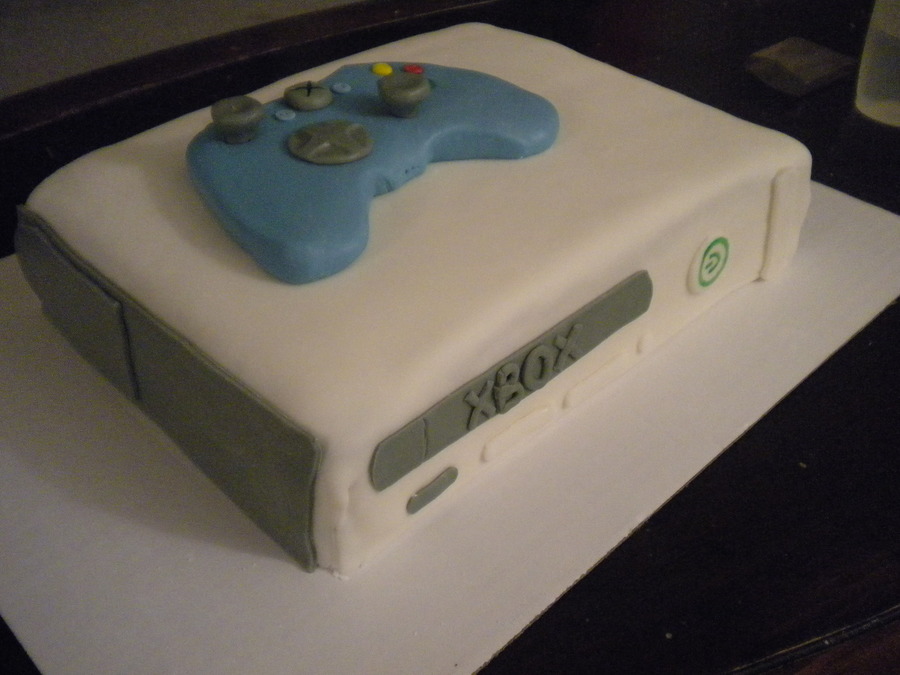 XBOX 360 cake for my son's birthday. MMF over chocolate cake with MMF details and controller. The controller went a little flat due to MMF. I should have used RCT and the covered it in MMF